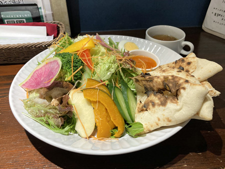 ちなみにサラダランチはこんな感じで30センチほどの大きなお皿にレタスや水菜をメインとした数種類のサラダがたっぷり盛られていて、見た目がとても鮮やかです。